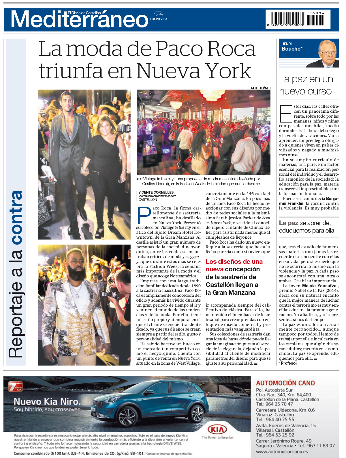 Paco Roca, la firma castellonense de sastrería masculina, ha desfilado en Nueva York. Presentó su colección Vintage in the city en el ático del lujoso Dream Hotel Downtown, de la Gran Manzana. Al desfile asistió un gran número de personas de la sociedad neoyorquina, entre las cuales se encontraban críticos de moda y bloggers, ya que durante estos días se celebra la Fashion Week, la semana más importante de la moda y el diseño que acoge Norteamérica.
