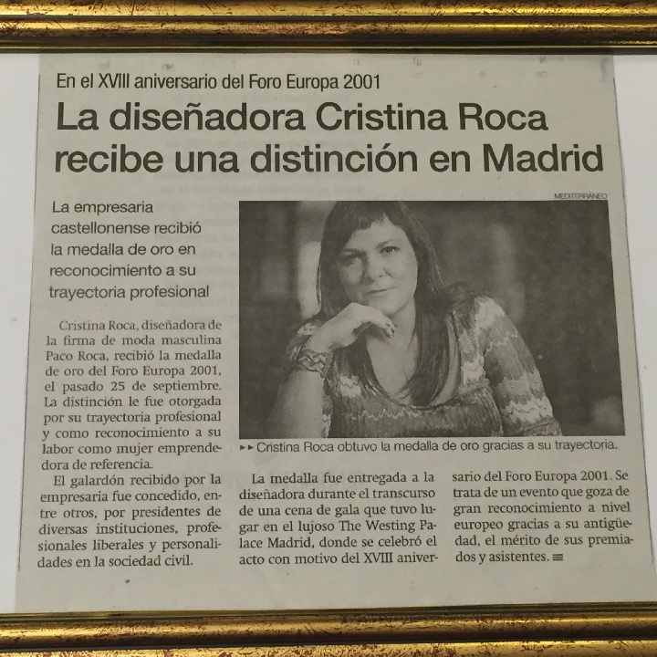 Cristina Roca recibe la Medalla de Oro del Foro Europa 2001 en Madrid