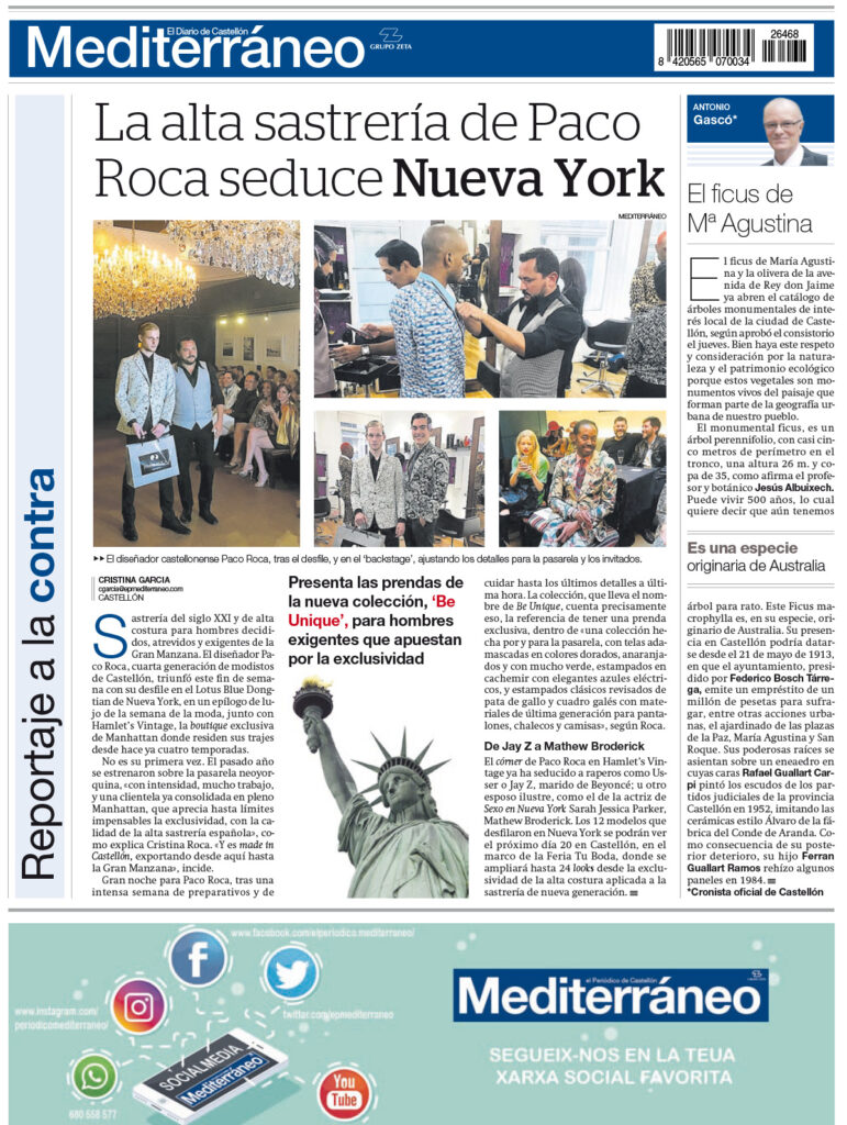 La alta sastrería de Paco Roca seduce Nueva York